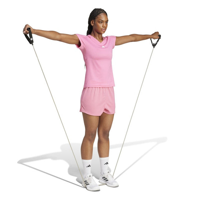 - Introducing The Aeroready Train Essentials Minimal Branding V-Neck T-Shirt, Exclusively Designed For Women. Made In Part With Recycled Materials, This Slim-Fit T-Shirt Is A Testament To Adidas' Commitment To Sustainability And Performance. The Aeroready Technology Ensures You Stay Dry And Comfortable, While The Flattering Seam Placements And Smart Cutlines Offer Freedom Of Movement Without Distraction. This Minimal Branded Training Tee Is A Timeless Staple For Any Workout Wardrobe - Ready To Perform When You Are.