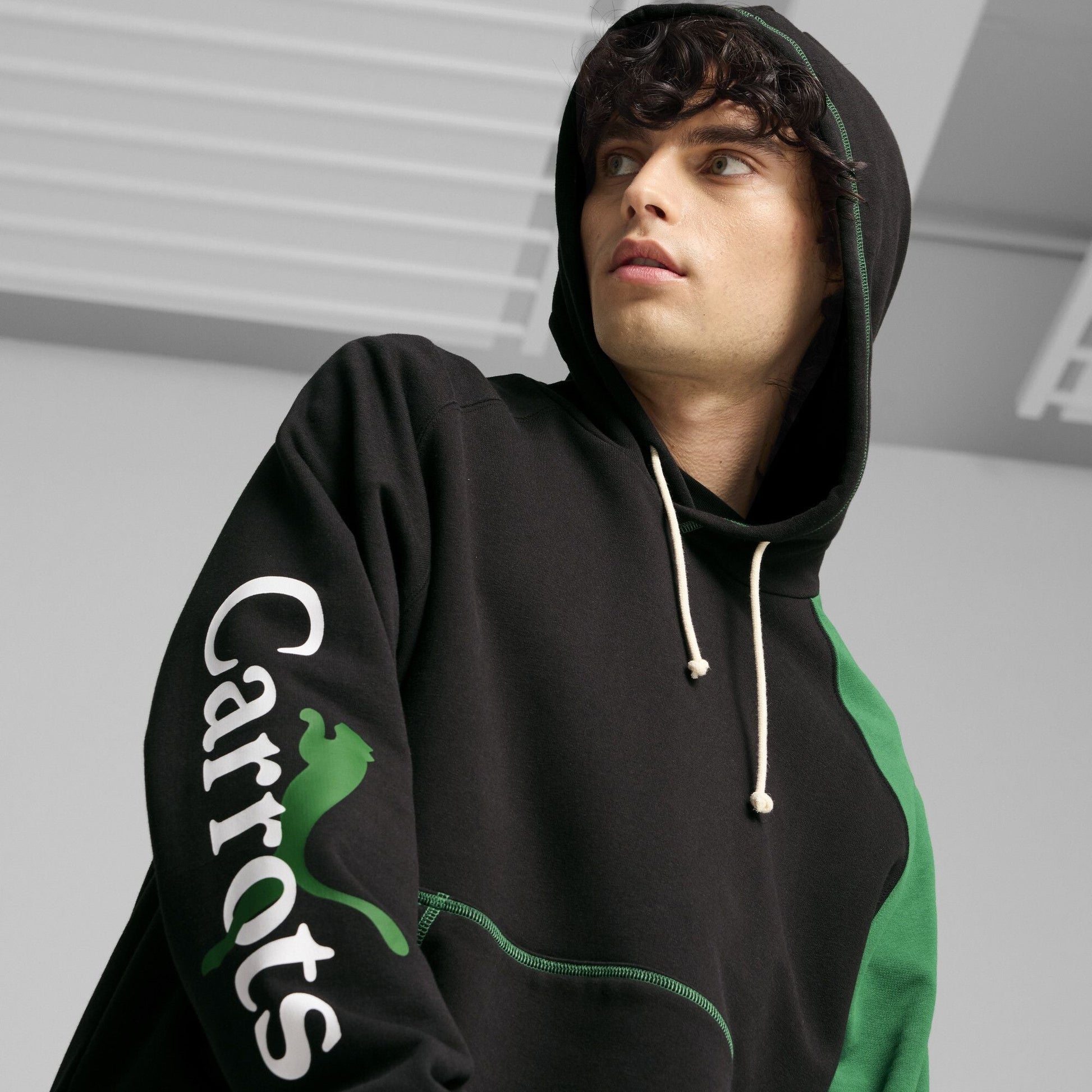 - This men's hoodie is part of the Puma x Carrots collaboration, featuring a pullover design with a drawcord-adjustable hood. It includes screen-printed graphics on the sleeve and contrast topstitching for a fun look. Randomly placed embroidered carrot badges are throughout the garment.