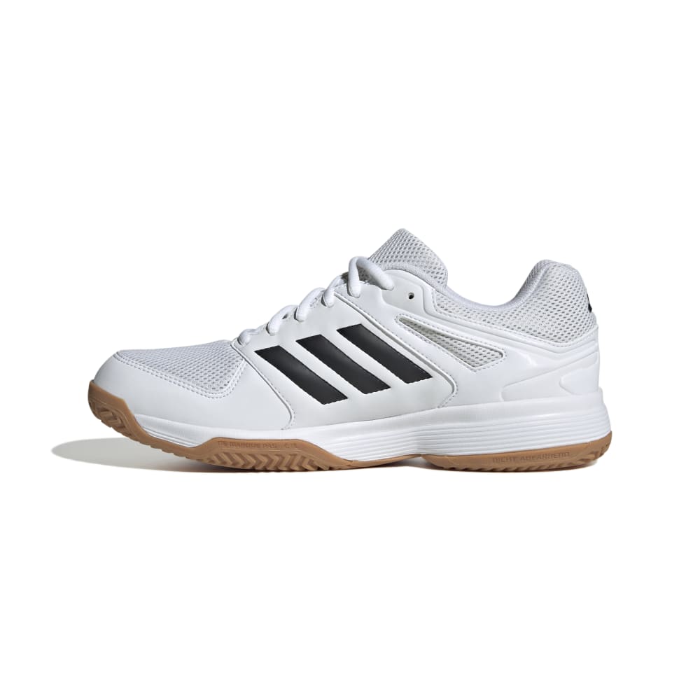 • Discover the ultimate indoor experience with adidas Speedcourt men's shoes, designed for multi-indoor sports enthusiasts. Featuring a breathable mesh and synthetic upper combined with an EVA midsole for lightweight cushioning and shock absorption, these shoes offer comfort, durability, and adaptability. With added stability from the heel counter and toe bumper, plus a classic lacing system for an adjustable fit and Adiwear non-marking rubber for excellent traction, they're ready to elevate your indoor performance.