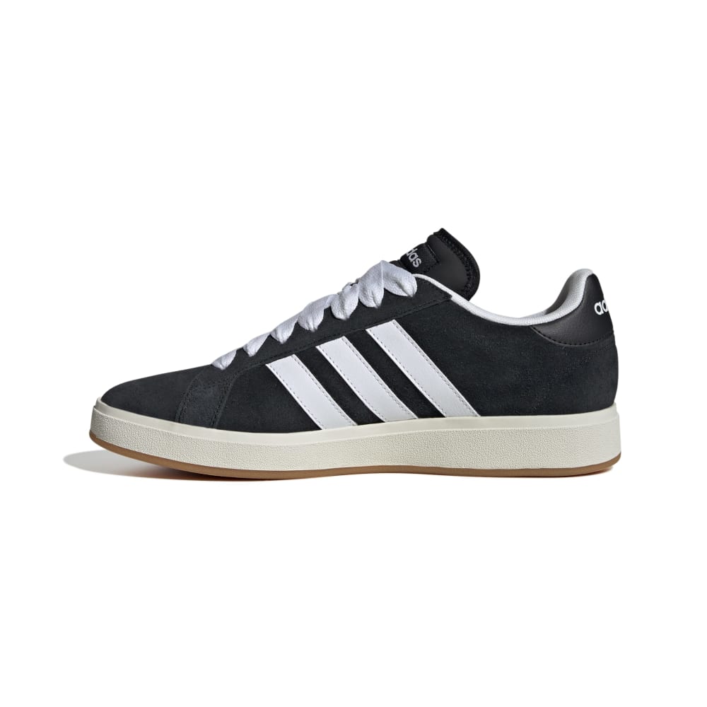 - Discover the blend of style and comfort with the Grand Court Base 00s shoes for men. Inspired by tennis, these shoes are perfect for casual streetwear. Crafted from leather and synthetics, they offer durability and a classic aesthetic. The lace-up design ensures a secure fit while the rubber outsole provides reliable traction. Made in part with recycled materials, these shoes not only look good but also contribute to sustainability. Enjoy the timeless silhouette of the Grand Court franchise, enhanced with a suede upper and synthetic leather 3-stripes and heel tab for an added touch of sophistication.