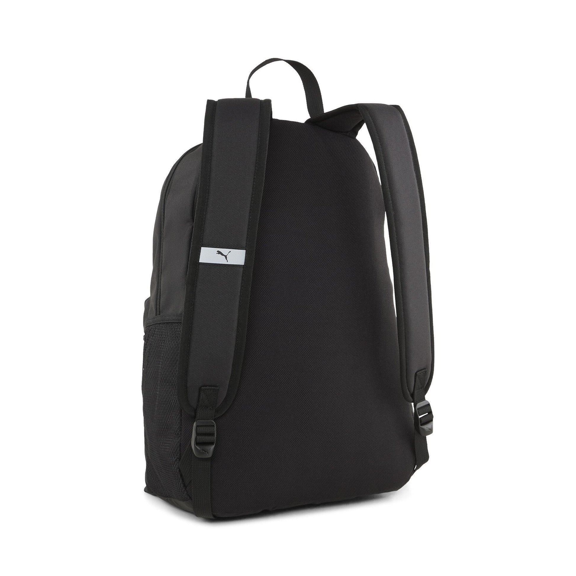 - The Puma Phase Unisex Backpack is a versatile and stylish accessory designed for everyday use. Crafted from durable polyester, it features a spacious main compartment with a two-way zip opening, a front zip pocket, and padded adjustable shoulder straps for comfort. The padded back panel adds extra support, while the webbing carry handle offers an alternative carrying option. The backpack is adorned with Puma branding details, adding a sporty touch to its classic design.