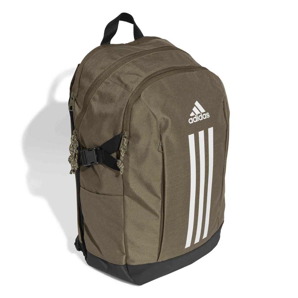 • The adidas Power Backpack, designed for all, is a practical choice for any adventure. Crafted with recycled materials, it features a front zipper pocket and side pocket for a water bottle, ensuring essentials are always within reach. The mesh padding offers ventilation and comfort, making this backpack a reliable companion for everyday use.