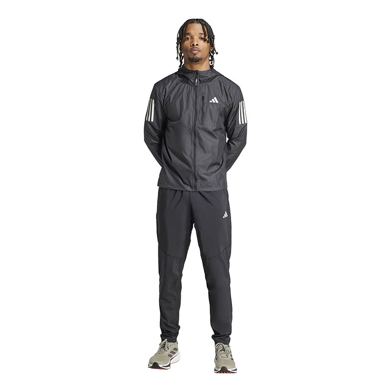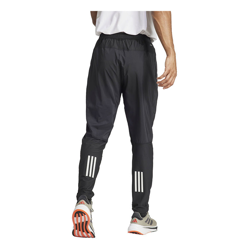 - Experience the essence of running in the Own the Run Pant. Made with 100% recycled materials, this woven pant is designed for comfort and functionality. The AEROREADY technology ensures you stay dry and comfortable, while reflective logos and stripes ensure visibility during those early morning or late evening runs. With an adjustable drawstring for a secure fit and zipped side pockets for convenience, these pants are a reliable companion on any run.