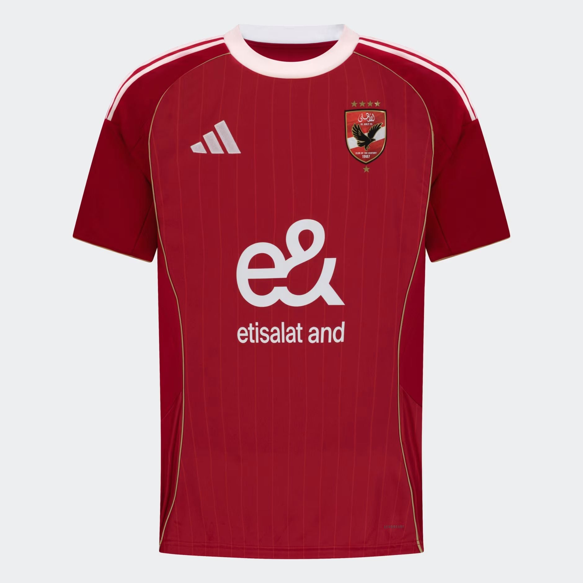 - Drawing inspiration from the club’s legendary 2006 tournament appearance, the design merges tradition with innovation. A tribute to Al Ahly’s legacy as the “Club of the Century”, the kit features heritage-inspired graphics, a bold red colorway, and a proud emblem on the back collar that echoes the club’s unmatched success. Engineered for peak performance, the jersey includes AEROREADY moisture-management technology and ultra-soft fabric — designed to support the champions of today with the spirit of legends past.