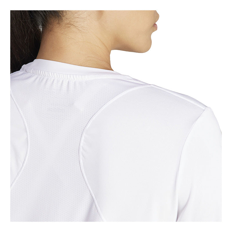 - Meet your new training partner, the adidas Designed for Training T-Shirt. Crafted for the woman who seeks performance and style, this regular fit, short-sleeve tee is made with 100% recycled PET. AEROREADY technology ensures a comfortable, dry workout while the mesh back panel enhances airflow. With its soft and stretchy fabric, this t-shirt offers no distractions, just pure focus on your fitness goals. Sustainability never looked so good.