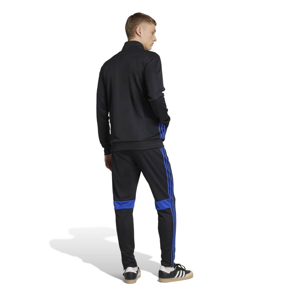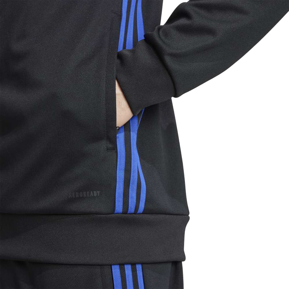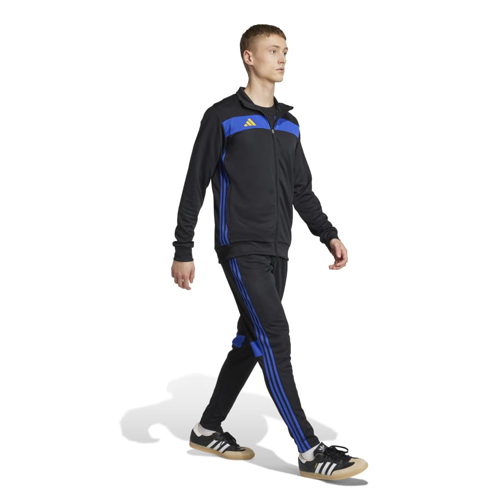 - Step onto the pitch with confidence in the Tiro25 Essentials tracksuit for men. Made in part with recycled materials, this slim-fit tracksuit is designed to manage body's sweat with adidas' AEROREADY technology, ensuring comfort for longer. With a mid-rise stand up collar and full zip front, it's perfect for both training and leisure. The iconic 3-stripes running down the sides and colour blocking insert add a stylish touch to this football-inspired lifestyle product.