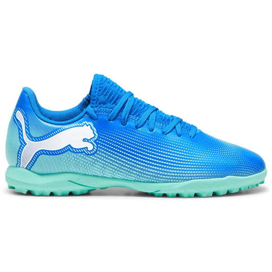 The Puma Future 7 Play Tt Jr In Hyperlink Blue-Mint Is Designed For Young Soccer...