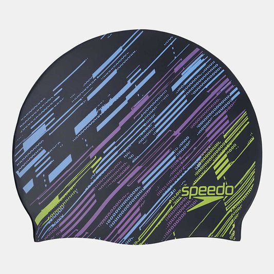 Protect your hair by wearing the Speedo Kids' Printed Silicone Swimming Cap with a bold...