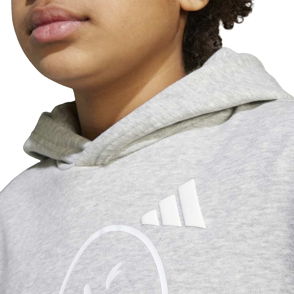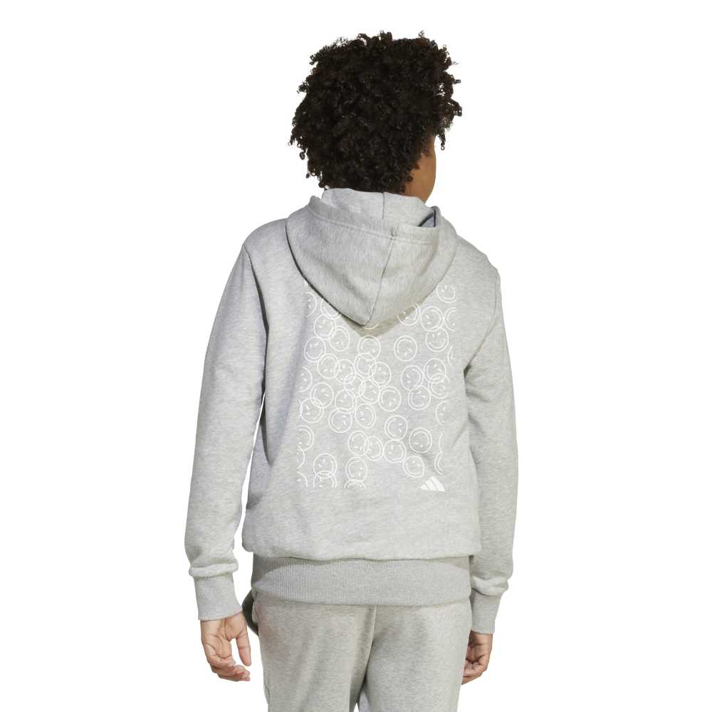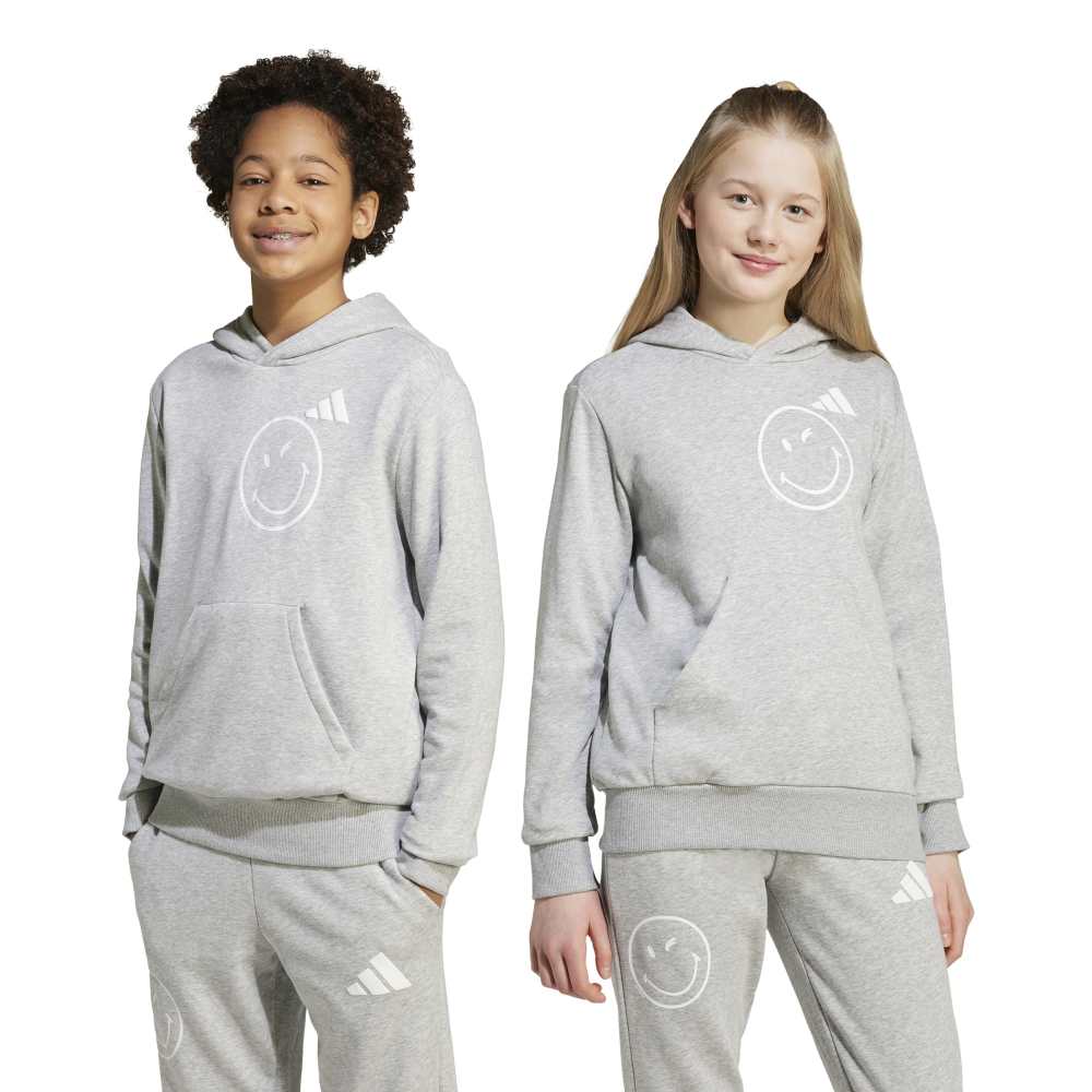 - Inject a dose of joy into your junior's wardrobe with the adidas x SmileyWorld Hoodie. This loose-fitting hooded sweatshirt, crafted from a blend of cotton, recycled polyester, and viscose, is designed to celebrate happiness with unique and exciting prints. Featuring a haptical smiley back print and the iconic 3 bar logo alongside the SmileyWorld signoff, this hoodie combines comfort with a playful twist. Made in part with recycled and renewable materials, it’s a cheerful addition to any young trendsetter's collection.