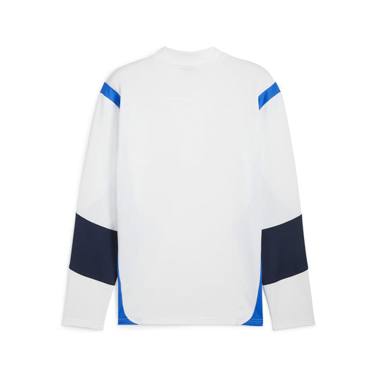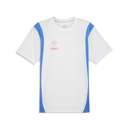 A men's white training top featuring a mock neck and quarter-zip design, incorporating Puma's KING...