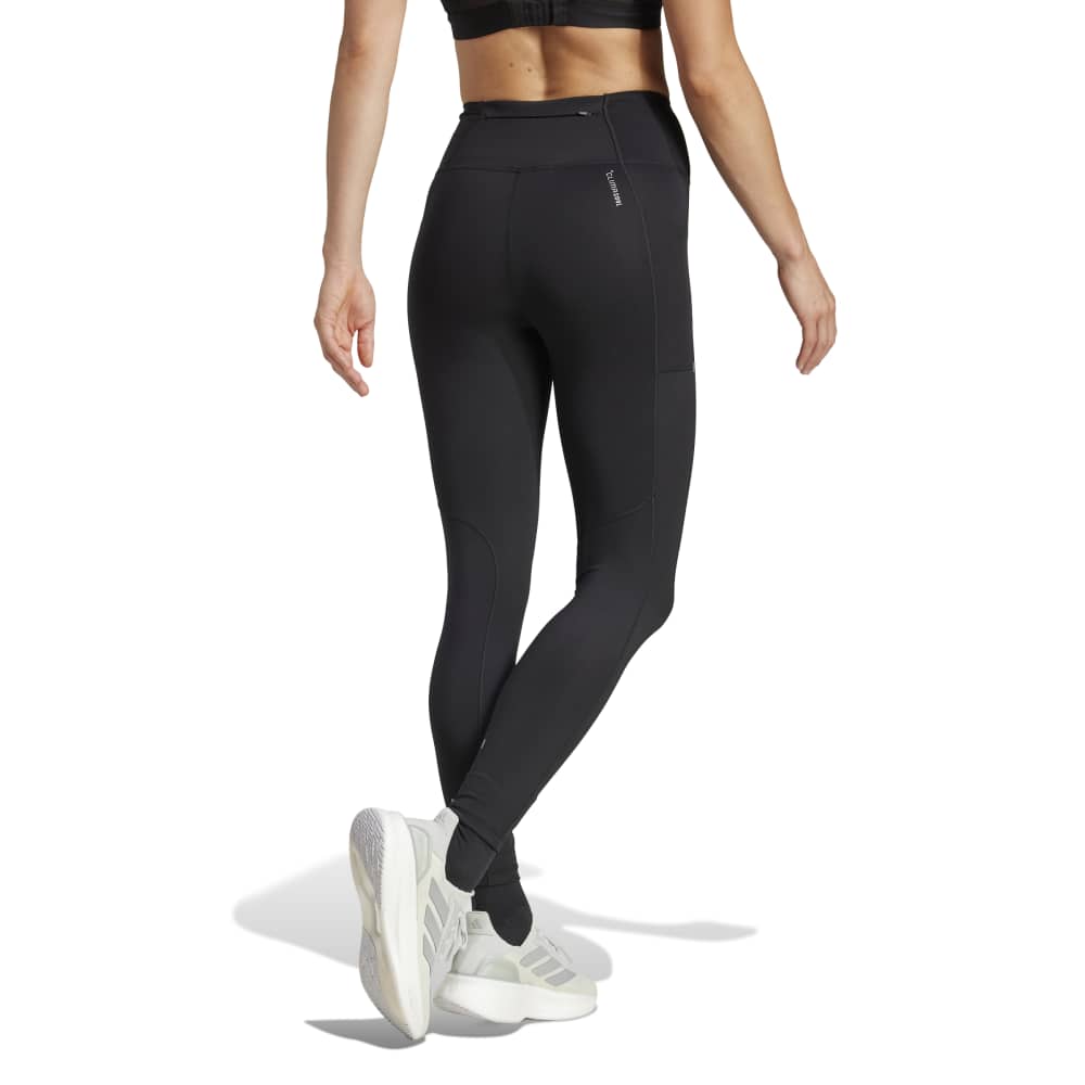 - Experience the fusion of tech and style with the Ultimateadidas 7/8 leggings for women. Crafted from a blend of recycled polyester and elastane, these running tights offer a snug fit that reduces chafing, thanks to their seamless design. The high-rise waistband provides comfortable coverage while the Climacool technology ensures you stay cool during your run. With easy-access pockets for essentials and reflective details for visibility, these leggings are made in part with recycled materials - a sustainable choice for your running gear.