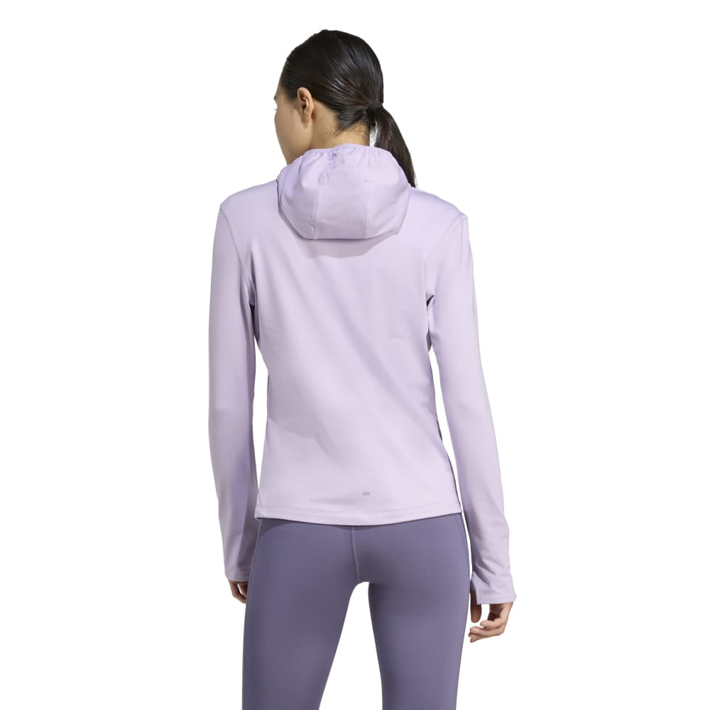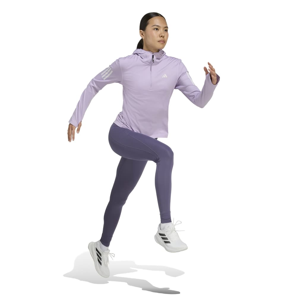 - Embrace the chill with the Own the Run Winterized Hooded Half-Zip sweatshirt. Designed for performance running, this slim-fit long-sleeve is crafted from 88% recycled polyester and 12% elastane knit, ensuring both warmth and flexibility. Climawarm technology traps heat while releasing sweat, keeping you warm and dry in any weather. Reflective logos and stripes enhance visibility, while thumbholes and a hood provide added protection and comfort. This piece is a nod to versatility without compromising on performance.