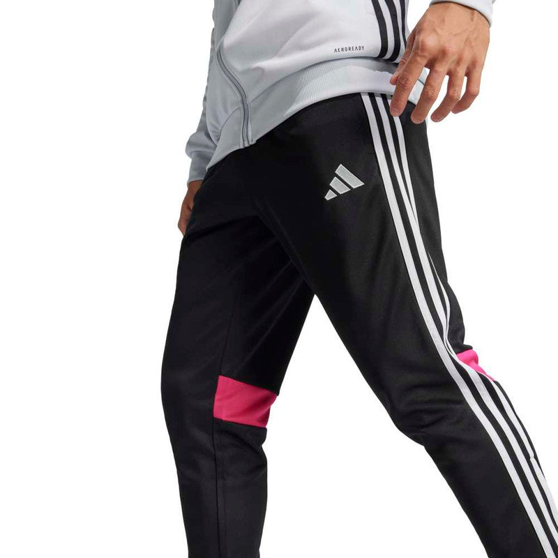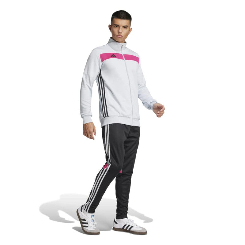 - Take your off-field style up a notch. This track suit from adidas borrows from the beautiful game for a winning look. Moisture-managing AEROREADY keeps you dry when life shifts up a gear, whether you're heading to football training or backing your team. The sleek build and bold styling bring energy to your look as you take on new challenges.