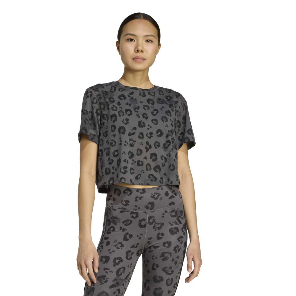 - Elevate your training wardrobe with the Workout Essentials T-Shirt Print, designed for versatile training and beyond. This loose-fit, cropped t-shirt boasts a modern silhouette and a striking seasonal animal print, perfect for making an impact both in and out of the gym. Crafted from a blend of recycled polyester and rayon, it features sweat-wicking Climacool technology to keep you cool, dry, and ready for any workout. Pair it with matching print shorts or leggings for a head-to-toe look that’s as stylish as it is functional.