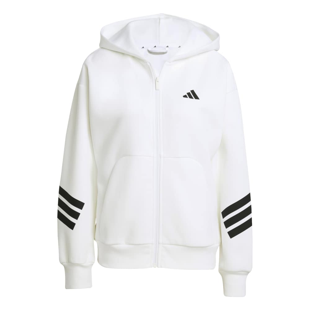 - This adidas hoodie allows you to wrap yourself in comfort. The cotton-blend fabric feels soft against your skin, and the relaxed shape lets you move with ease. Ribbed details at the cuffs and kangaroo pockets complete the look. Zip it up and let the modern 3-Stripes branding on the arms show your connection to sport.