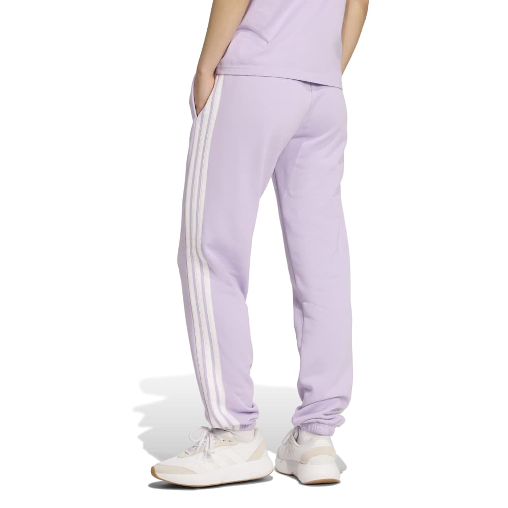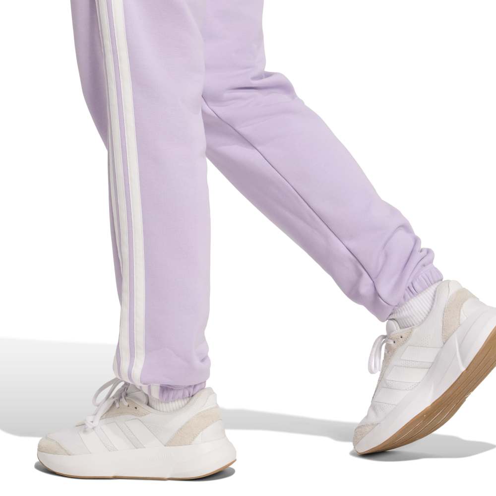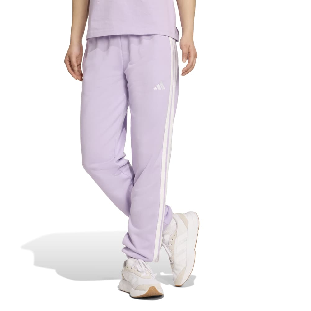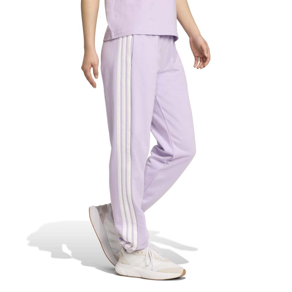 - Meet the Essentials 3-Stripes French Terry Cuffed Pants, a woman's wardrobe staple. Crafted with a sustainable manufacturing method, these knit pants offer a regular fit that's ideal for any occasion. The traditional three stripes branding and small sportswear logo add a touch of adidas heritage. Made with Better Cotton and recycled materials, these pants support sustainable cotton farming and our ambition to end plastic waste.