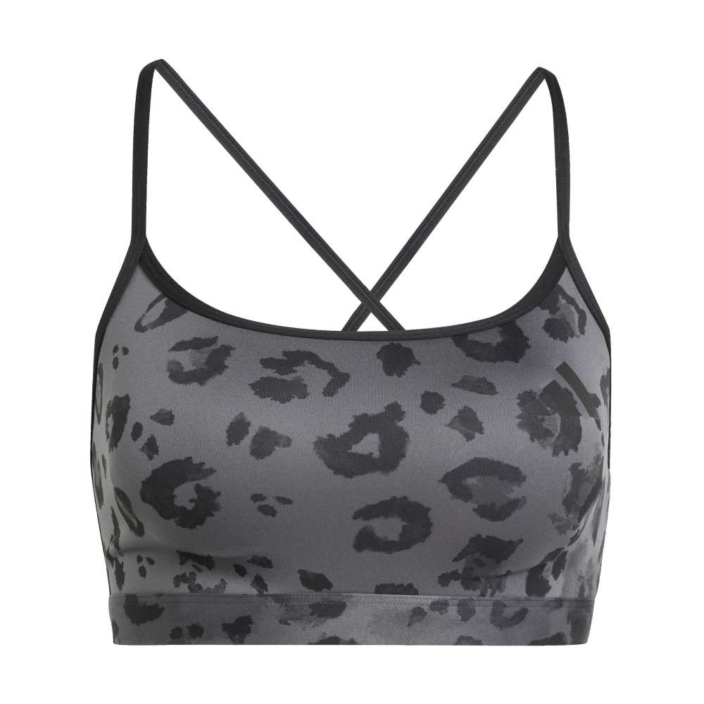 - Elevate your training wardrobe with the Powerreact Essentials Light Support Bra Print. This versatile bra, designed for low-impact workouts, features a fresh animal print that stands out both in and out of the gym. Crafted from a blend of recycled polyester and elastane, it offers a tight, comfortable fit that stretches to move with you. The breathable fabric, enhanced by sweat-wicking Climacool technology, keeps you cool and dry, while grip dots on the pads reduce movement during exercise. Minimal branding and a contrast performance logo add a sleek touch.