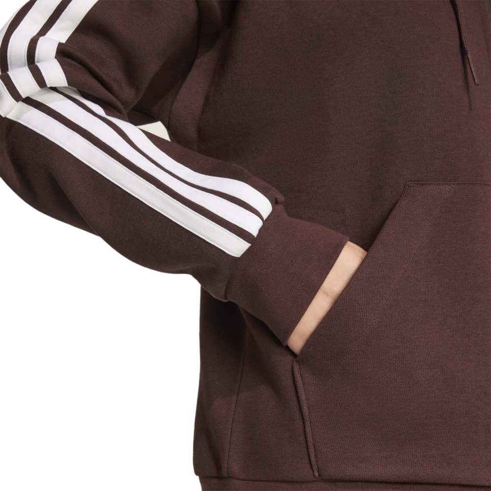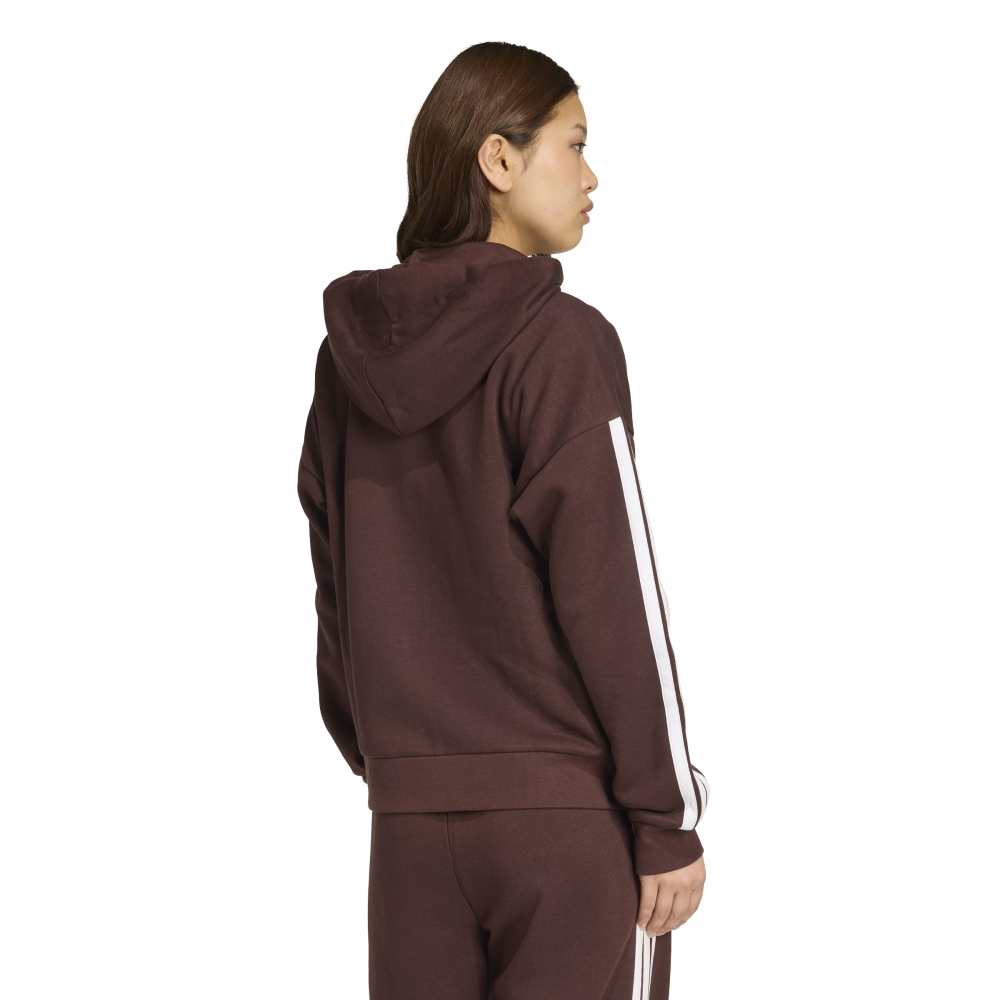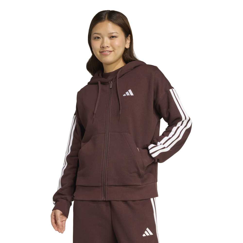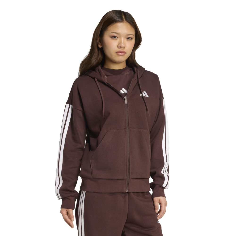 - Introducing the Essentials 3-Stripes Full-Zip Fleece Hoodie for women. This regular fit, hooded track top is made with a blend of Better Cotton, recycled Polyethylene Terephthalate and Viscose, offering a sustainable design that supports our ambition to end plastic waste. The traditional Three Stripes branding and brushed back fleece material provide a modern fit with a nod to adidas' classic style. Ideal for mixing and matching with your favourite fashion items, it's a staple for any wardrobe.
